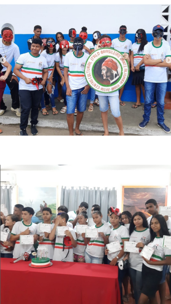 O CCIB Dante Alighieri é reconhecido pelo Governo Italiano como Ente Gestore e conta com o apoio do Consulado da Itália no Recife e do MAECI (Ministero degli Affari Esteri e della Cooperazione Internazionale), que cofinancia, por meio do Cap. 3153, as atividades de difusão e promoção da língua e cultura italianas. Este projeto é voltado para crianças e jovens de até 18 anos, estudantes de escolas localizadas no Recife e Vicência.